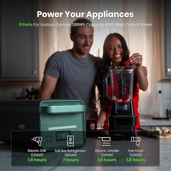 ✅ 4,000W Continuous/6,000W Peak Power – Powers most home devices, including refrigerators and power tools